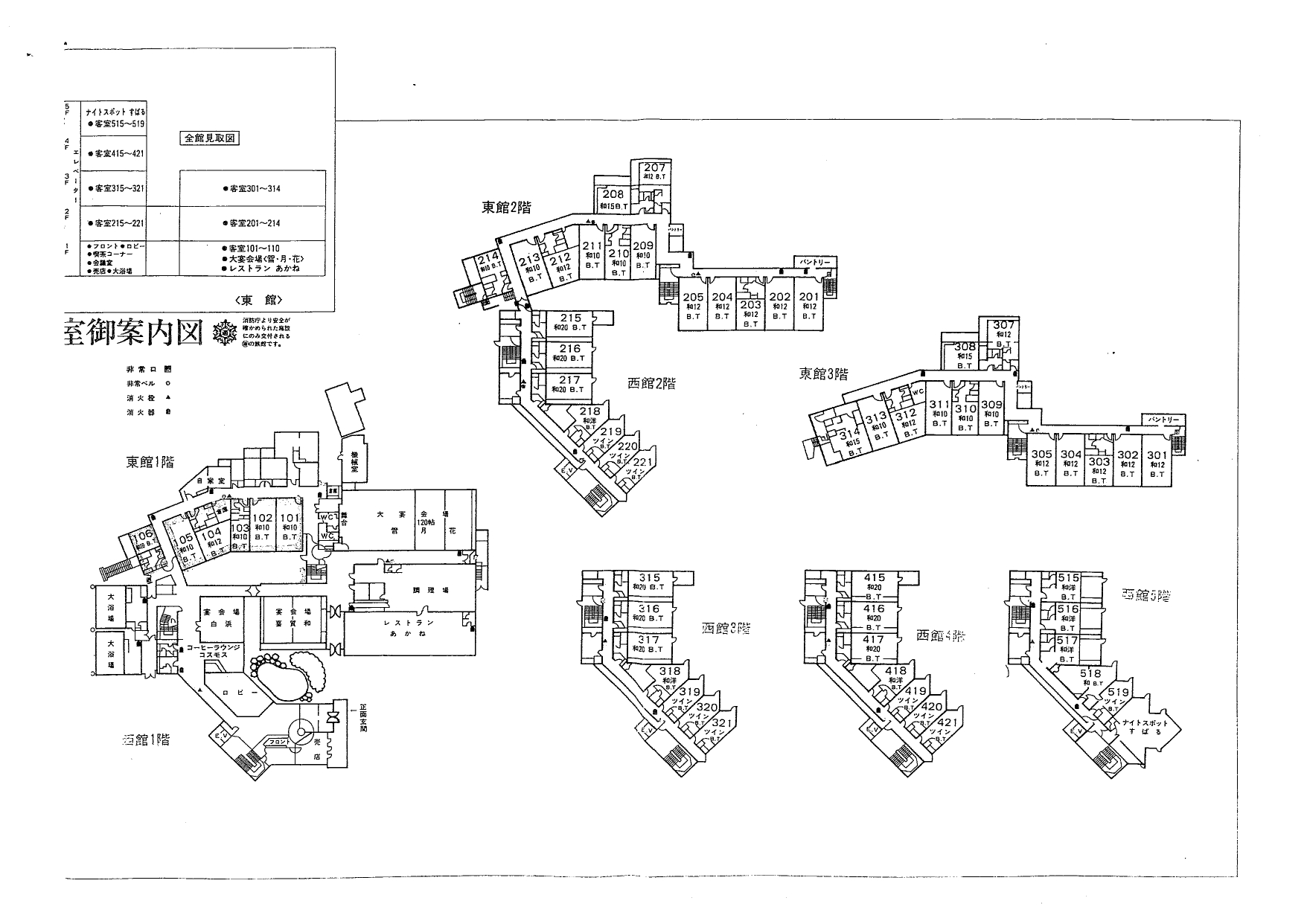| 種類 | 旅館 | 床面積 | 1階 1228.10㎡ 2階 667.33㎡, 3階 652.39㎡ |